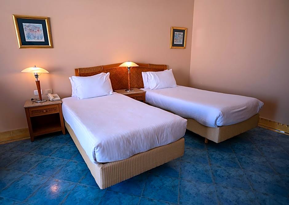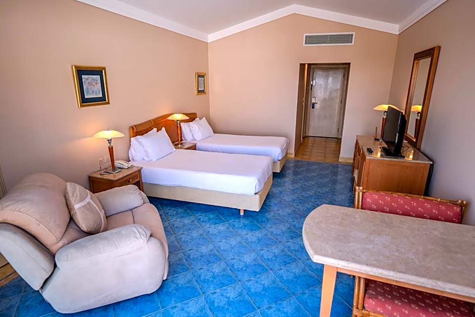 Overlooking the Red Sea with a private balcony or a terrace. available with one King size or 2 twin beds, private bathroom, large wardrobe, Individually controlled air conditioning, direct dial phone and a satellite TV. A mini-bar and a safety deposit box are also included.